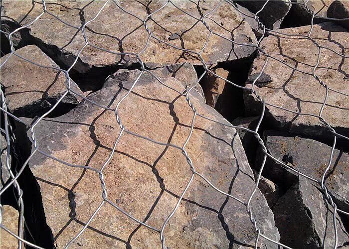 गैबियन बॉक्स या गैबियन टोकरी भारी जस्ती तार/जस्ता एल्यूमीनियम (गल्फान) लेपित तार/पीवीसी लेपित तारों से बने होते हैं, जाल का आकार षट्कोणीय शैली का होता है।गैबियन बक्से ढलान सुरक्षा में व्यापक रूप से उपयोग किया जाता है, फाउंडेशन गड्ढे का समर्थन, पर्वत चट्टान पकड़, नदी और बांधों की सुरक्षा।